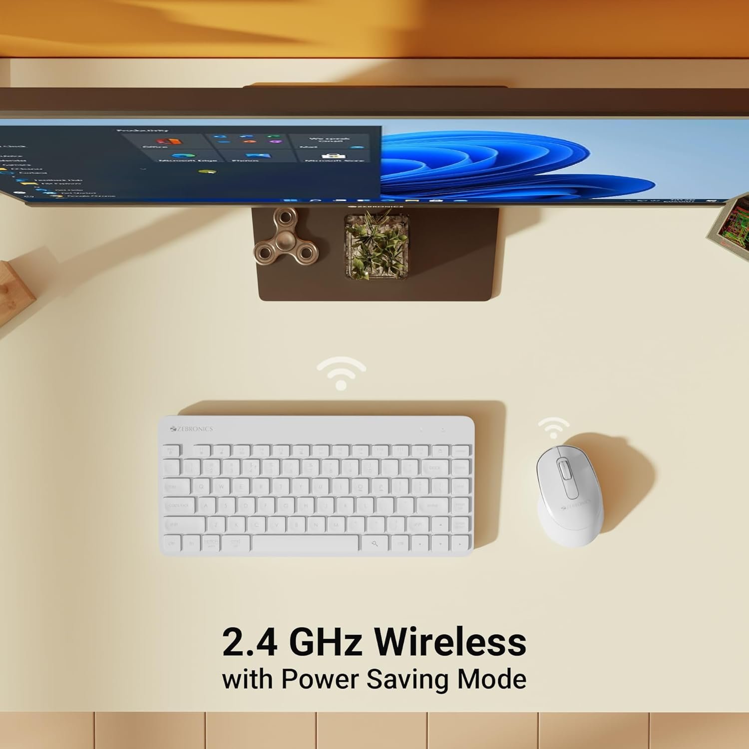 ZEBRONICS Companion 201 2.4GHz Wireless Keyboard & Mouse Combo, 83 Keys, AI Assist Key, 12 Integrated Multimedia Keys, 3 Button Mouse, 1600 DPI, High Precision, Silent Operation (White)