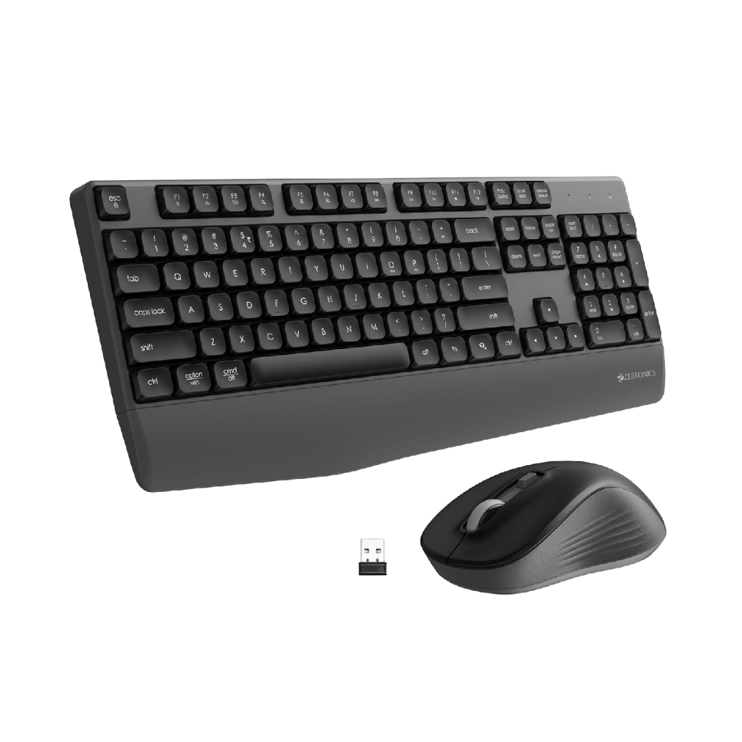 ZEBRONICS Companion 202 2.4GHz Wireless Keyboard & Mouse Combo, 104 Keys, Copilot AI, 12 Integrated Multimedia Keys, 4 Button Mouse, 1600 DPI, High Precision, Silent Operation (Grey)